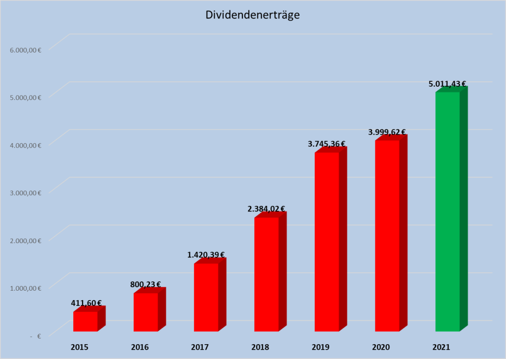 Dies einmal veranschaulicht an meiner jährlichen Übersicht der erhaltenen Dividenden (netto) seit 2015: