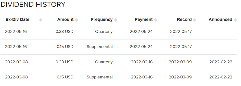 Vor 10 Tagen, am 07.06.2022, habe ich meinen bisher letzten Kauf getätigt. Ein Nachkauf. Erneut hat es mir Hercules Capital angetan und ich habe hier noch einmal mit 100 Stück zu einem Kurs von 13,20 Euro zugeschlagen. Im Nachgang dann doch wieder zu teuer und es geht aktuell weiter bergab. Aber in dieser Zeit befinden wir uns aktuell und da ich ein langfristiger Investor bin, gehe ich auch wieder von einer Erholung aus. Im Moment wird das Unternehmen nur so nach unten gezogen, da die Zinsen steigen und Hercules Capital nun mal abhängig von den Zinsen ist. Dennoch gehe ich davon aus, dass das Unternehmen gut aufgestellt ist und sich darauf entsprechend vorbereitet hat. Dies zeigt auch erst die getätigte Sonderausschüttung zur üblichen Quartalsdividende: