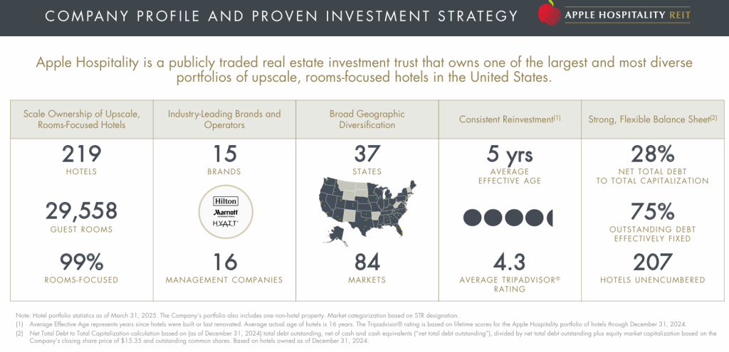Das Unternehmen bezeichnet sich selbst als Real Investment Trust (REIT) mit einem der größten und vielfältigsten Portfolios an gehobenen, auf Zimmer spezialisierten Hotels in den USA. Das Portfolio umfasst 219 Hotels mit rund 29.500 Gästezimmern in 84 Märkten in 37 Bundesstaaten und dem District of Columbia. Bei den Hotels handelt es sich um branchenführende Marken, wie Marriott mit 97 Hotels, Hilton mit 117 Hotels und 5 Hotels der Marke Hyatt.